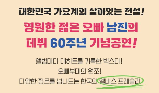 8월은 남진의 데뷔 60주년 기념공연도 볼 수 있는 기회입니다.
