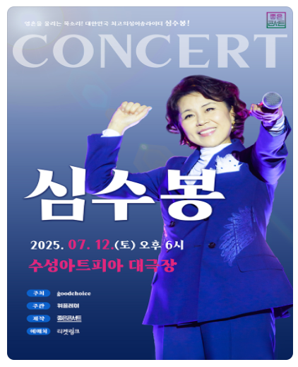 - 공연명: 2025 심수봉 전국투어 ‘꽃길’ – 대구